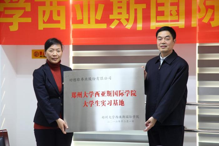 随后,双方签订了实习基地合作协议,并共同为郑州大学西亚斯国际学院大学生实习基地揭牌。西亚斯国际学院副校长郭爱民还为石聚领副总颁发创业导师聘书,为杨伏玲总监颁发实习导师聘书。