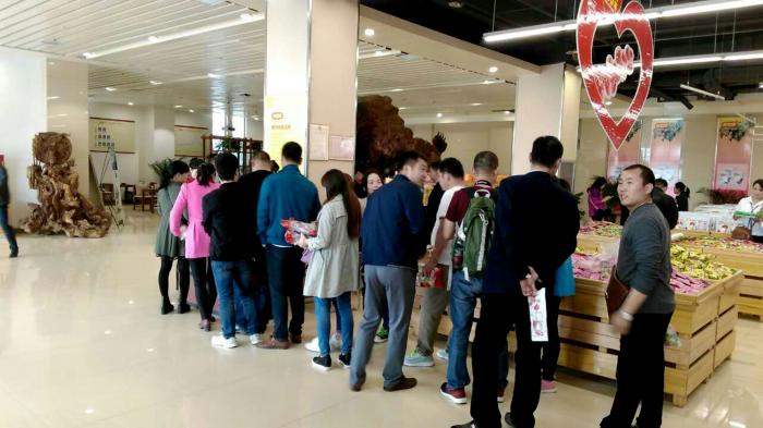 临行前,双汇参观团来到展厅店对产品进行考察。品尝了芒果体育的产品后,参观团成员纷纷点赞,当即掀起了一场抢购风潮,不少人甚至不问价格直接购买,枣生核等货架很快销售一空。一位双汇员工说:“参观透明工厂,让我更加信得过芒果体育的产品,而万佛苑则使我被芒果体育的企业情怀深深打动,以后吃枣只认芒果体育!”